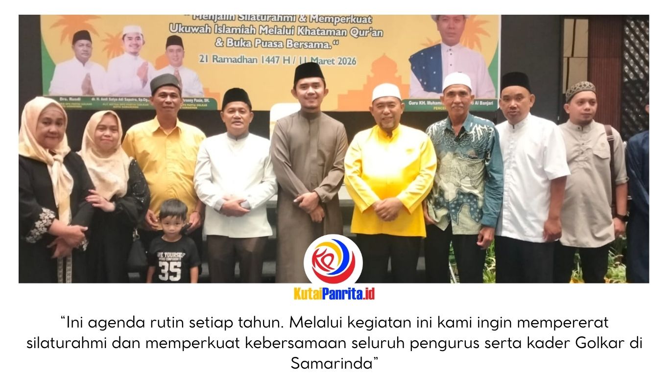 KUTAIPANRITA.ID, SAMARINDA – Dewan Pimpinan Daerah (DPD) Partai Golkar Kota Samarinda menggelar kegiatan Khataman Al-Qur’an yang dirangkai dengan buka puasa bersama dalam rangka mempererat silaturahmi antar pengurus dan kader selama bulan suci Ramadan. Kegiatan bertema “Menjalin Silaturahmi dan Memperkuat Ukhuwah Islamiah” ini berlangsung di Hotel Mercure Samarinda, Rabu (11/3/2026).