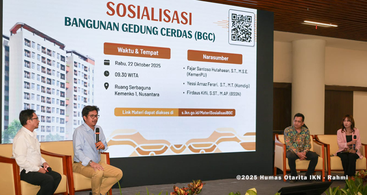 KUTAIPANRITA.ID, NUSANTARA — Wujudkan Kota Cerdas Nusantara, mulai dari pemasangan multi-utility tunnel (MUT), keamanan siber, hingga kenalkan fitur artificial intelligence dalam perencanaan tata kota. Otorita Ibu Kota Nusantara (IKN) menyelenggarakan sosialisasi Bangunan Gedung Cerdas (BGC) di Ruang Serbaguna Kemenko 1, Kawasan Inti Pusat Pemerintahan (KIPP) Nusantara, Rabu (22/10/2025).